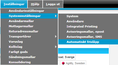 Automatiskt frisläpp används för att frisläppa vid en viss tidpunkt som kan sättas antingen för alla produkter hos en transportör eller för vardera produkt hos den transportören.