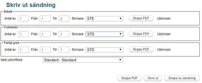 För de som inte har Integrated printing eller vill skriva ut frakthandlingar en gång till så får följande ruta fyllas i.