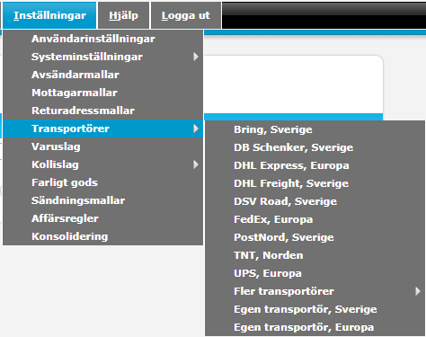 - Gå in under Inställningar > Transportörer > Välj transportör