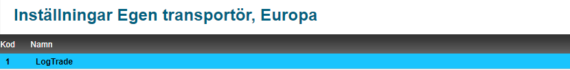 För att lägga upp en Egen transportör, Europa i LogTrade
