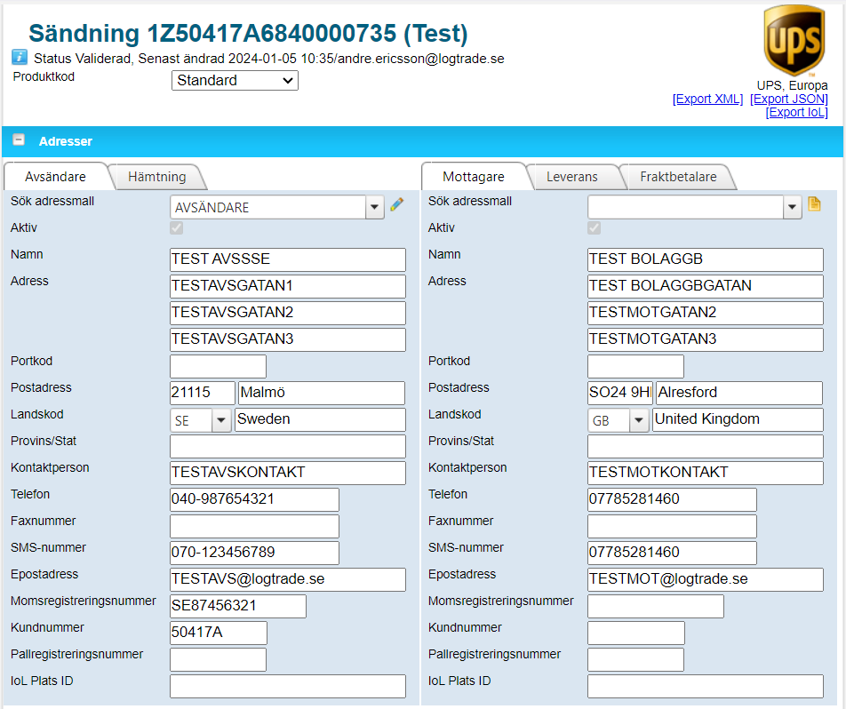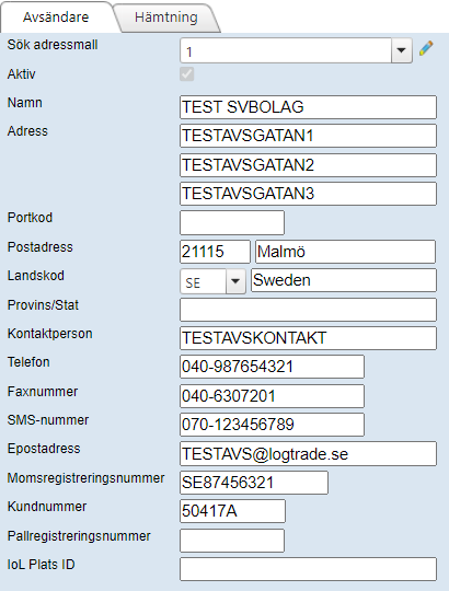 <Address1>TEST BOLAGFRAKTGATAN</Address1>