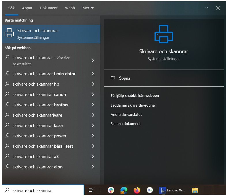7.1 Sök upp Skannrar och skrivare i Windows genom att skrivare detta sökord i sökfältet i Windows.