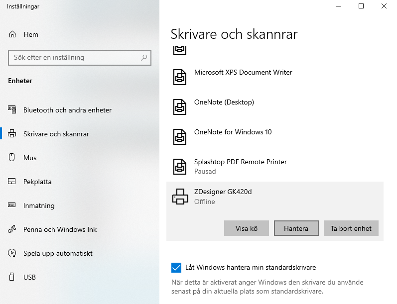 7.2 Välj vilken skrivare det gäller och klicka på Hantera.